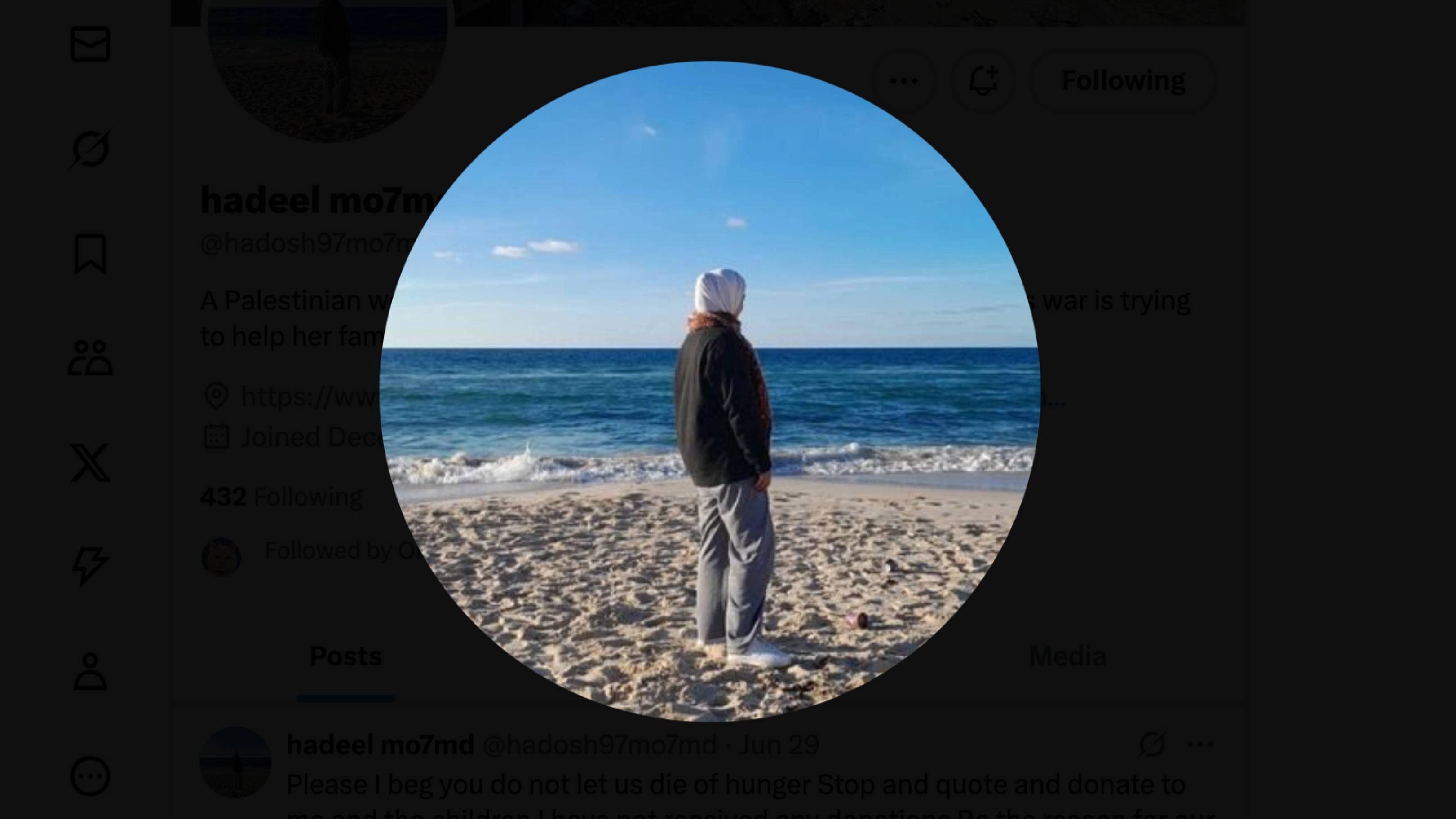 $460 AUDpast 30 days$6,993 AUDcollected164donationsHello, my name is Hadeel Mohammed, and I am displaced to a tent in Gaza with my husband and three beautiful children. I'm doing my best to survive and help my family, but I can't do it alone. We're living under bombardment with no food and no safety, so we are simply asking for donations to help us find food and survive this genocide.